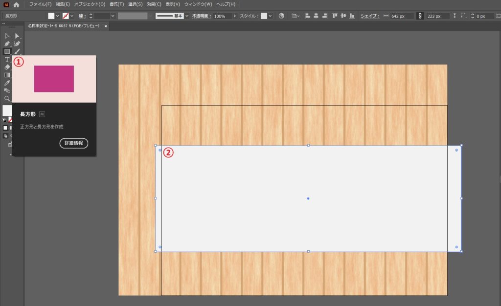 ①長方形ツールを選択し