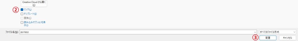 ①ファイル→配置(Shift+Command+P)